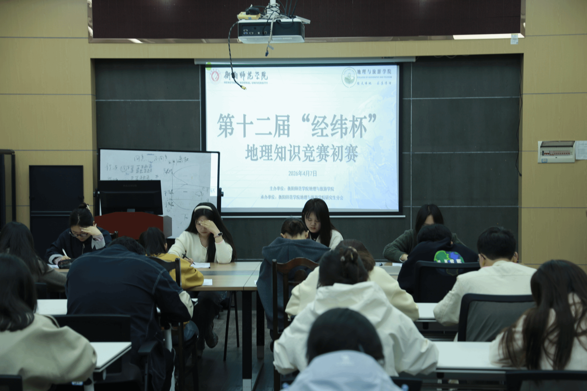 为普及地理科学知识,弘扬地理文化精神,激发校园学术实践活力,地理与旅游学院于2026年4月7日下午在东校区星翰楼中311教室,成功举办了第十二届“经纬杯”全国高校地理知识竞赛(衡阳师范学院赛区)初赛。