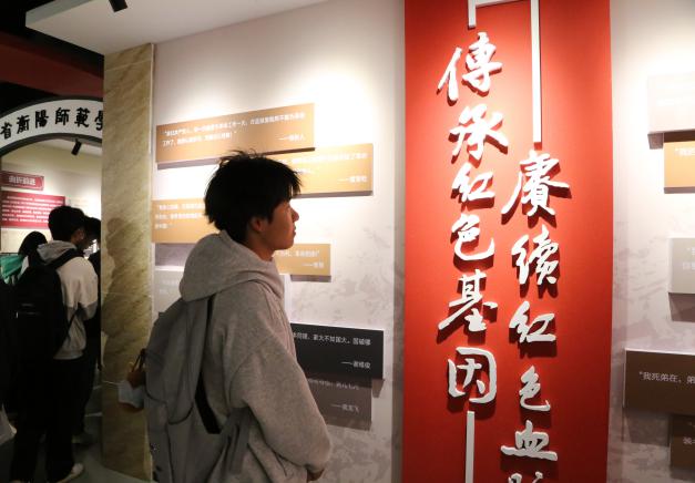 同学们跟随讲解员的指引,沿着历史的脉络,深入了解学校从1904年创办“湖南官立南路师范学堂”至今的发展历程。当看到1922年毛泽东同志来校建立湘南地区第一个党支部的珍贵史料时,现场不时传出阵阵惊叹。25级旅管1班吴季洲同学动容地表示:“站在先辈们曾经奋斗过的地方,看着这些珍贵的历史照片,我仿佛穿越到了那个热血沸腾的年代。作为新时代青年,我们要继承这份红色基因,不负时代使命。”